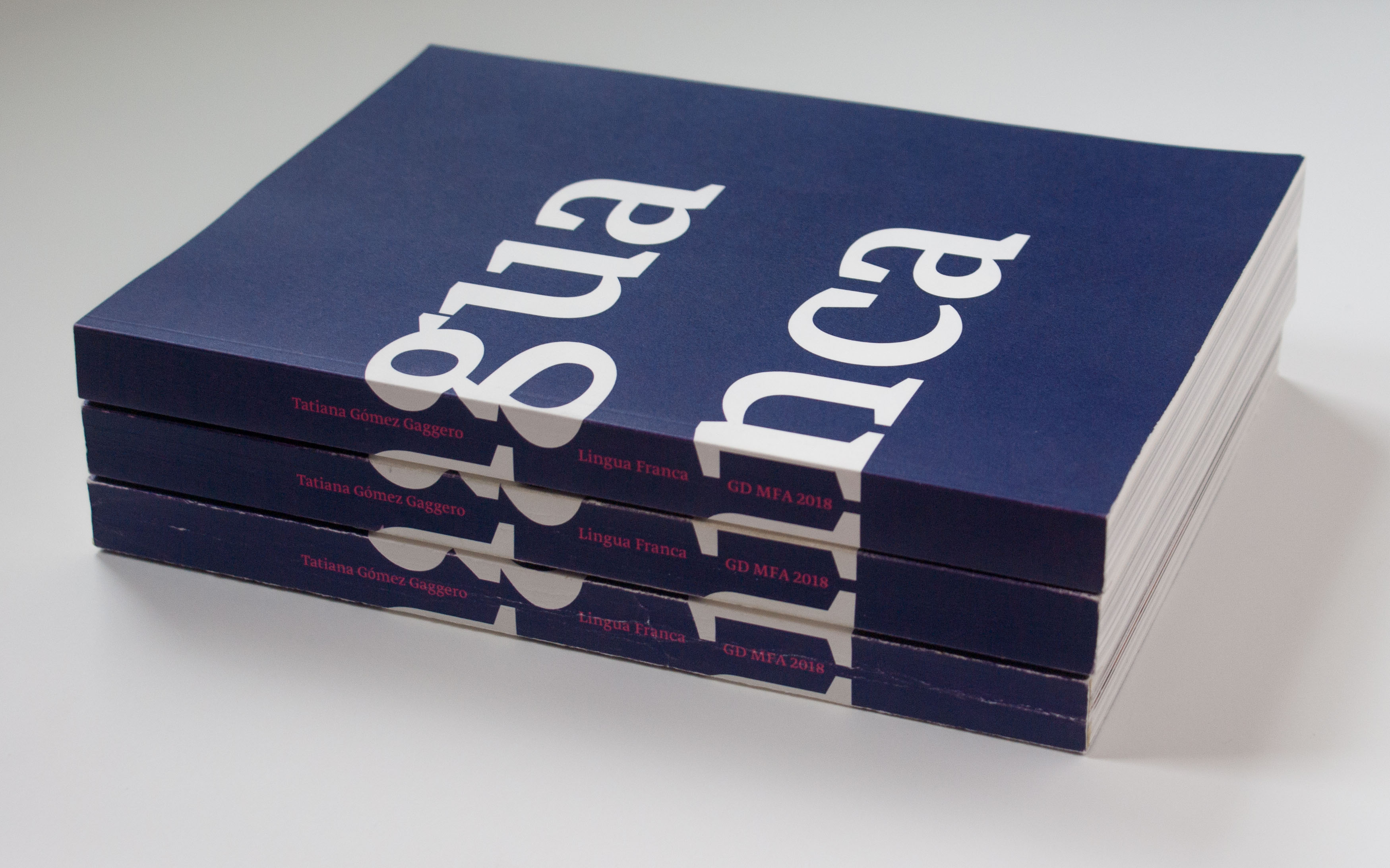 Lingua Franca is the thesis book I wrote and designed at the Rhode Island School of Design. It frames some of the work I developed in grad school while examining how graphic design and art are used as a common language between people who speak the same language, speak different languages or have distinct cultural backgrounds. Understanding languages as living systems that are in constant movement and in direct relation with cultures, this book looks at graphic design as a platform for coding and decoding language, shaping and reshaping it. It is written in English and Spanish and features an interview with conceptual artist Alfredo Jaar.